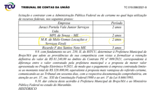 O caso deverá ser levado ao o Ministério Público Federal – MPF e Tribunal de Contas do Estado e da própria CGU, diante da gravidade institucional de se descumprir uma decisão do TCU, além de denuncia direta a Policia Federal nos próximos dias segundo nos informou um Parlamentar de um dos municípios citados.
