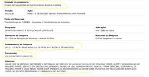 Entre os pagamentos identificados, constam despesas custeadas com recursos vinculados à educação básica, incluindo verbas do FUNDEB, fundo federal destinado exclusivamente à manutenção e desenvolvimento da educação pública.