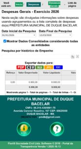 A administração municipal de Duque Bacelar, no Maranhão, passou a enfrentar novas suspeitas após denúncias de que pagamentos realizados com recursos públicos teriam sido ocultados no portal oficial de transparência do município, justamente no período em que contratos e movimentações financeiras da prefeitura passaram a ser investigados pelo Ministério Público do Estado do Maranhão.